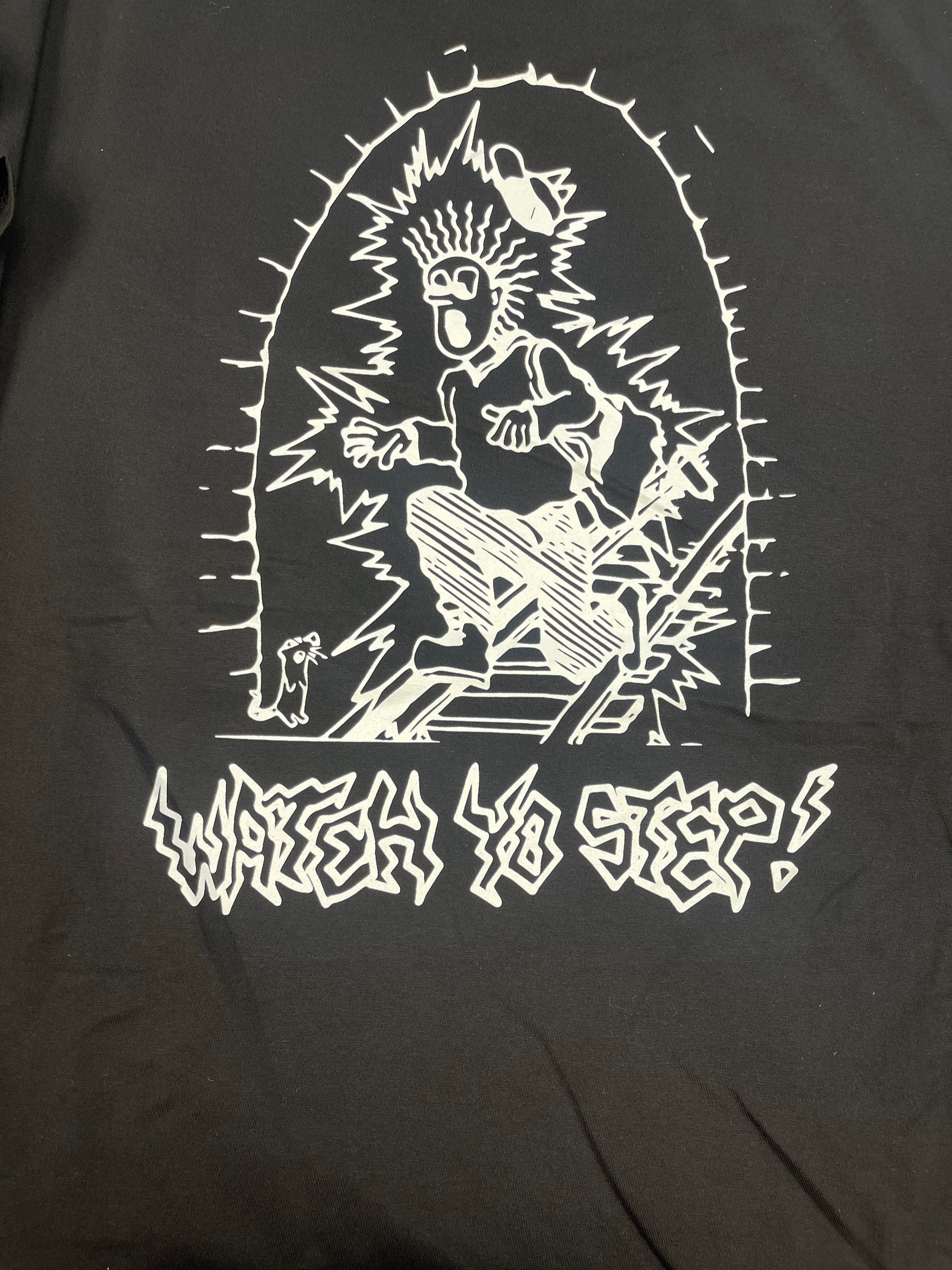 "Watch Yo Step" Tee With Third rail Graffiti Roof Chest logo